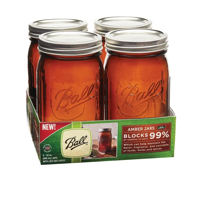 Ball 32oz 4pk Amber Jars Wide Mouth