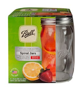 Ball Elite Collection Spiral Mason Jars, 16 oz, Regular Mouth, (4 pcs)