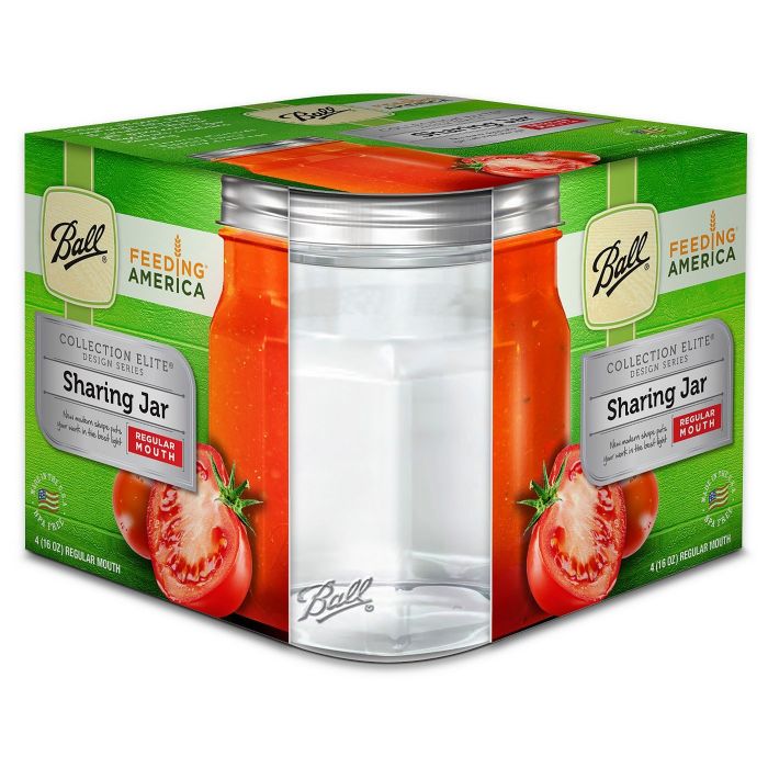 Ball 4ct 16oz Collection Elite Sharing Glass Mason Jar with Lid and Band - Regular Mouth
