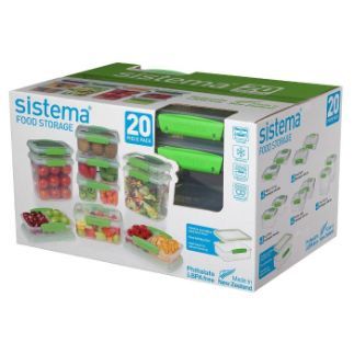 Sistema Klip Accents Collection Food Storage Containers, Clear/Green, 20-Piece Set